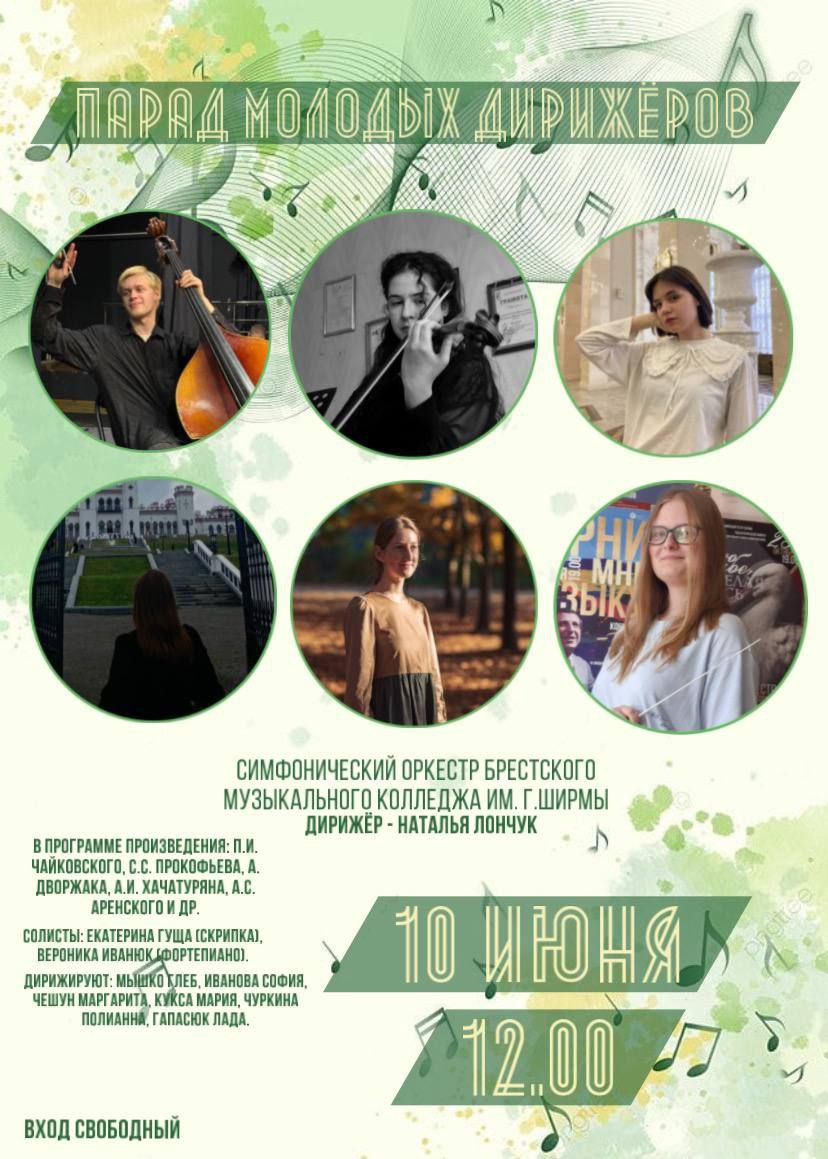 10 июня в 12.00 в Большом зале состоится концерт "Парад молодых дирижёров" при участии выпускников специальности «Струнно-смычковые инструменты», а также симфонического оркестра колледжа (худ. рук. Наталья Лончук)