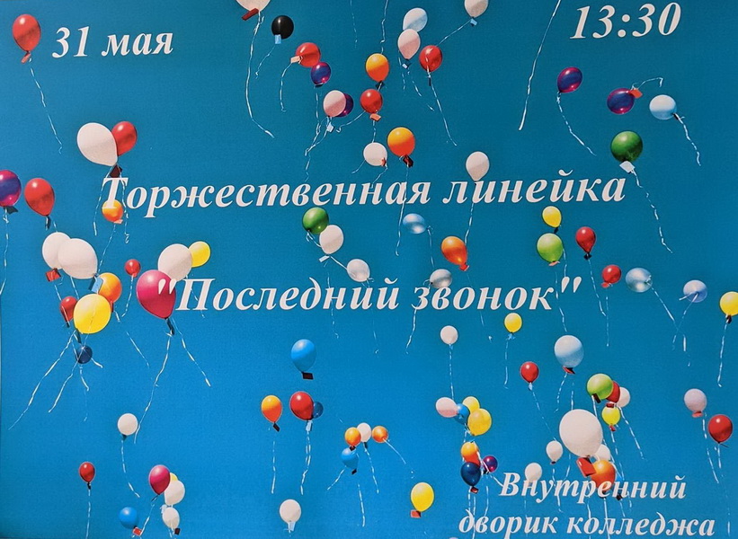 31 мая в 13.30 во внутреннем дворике колледжа состоится торжественная линейка "Последний звонок"