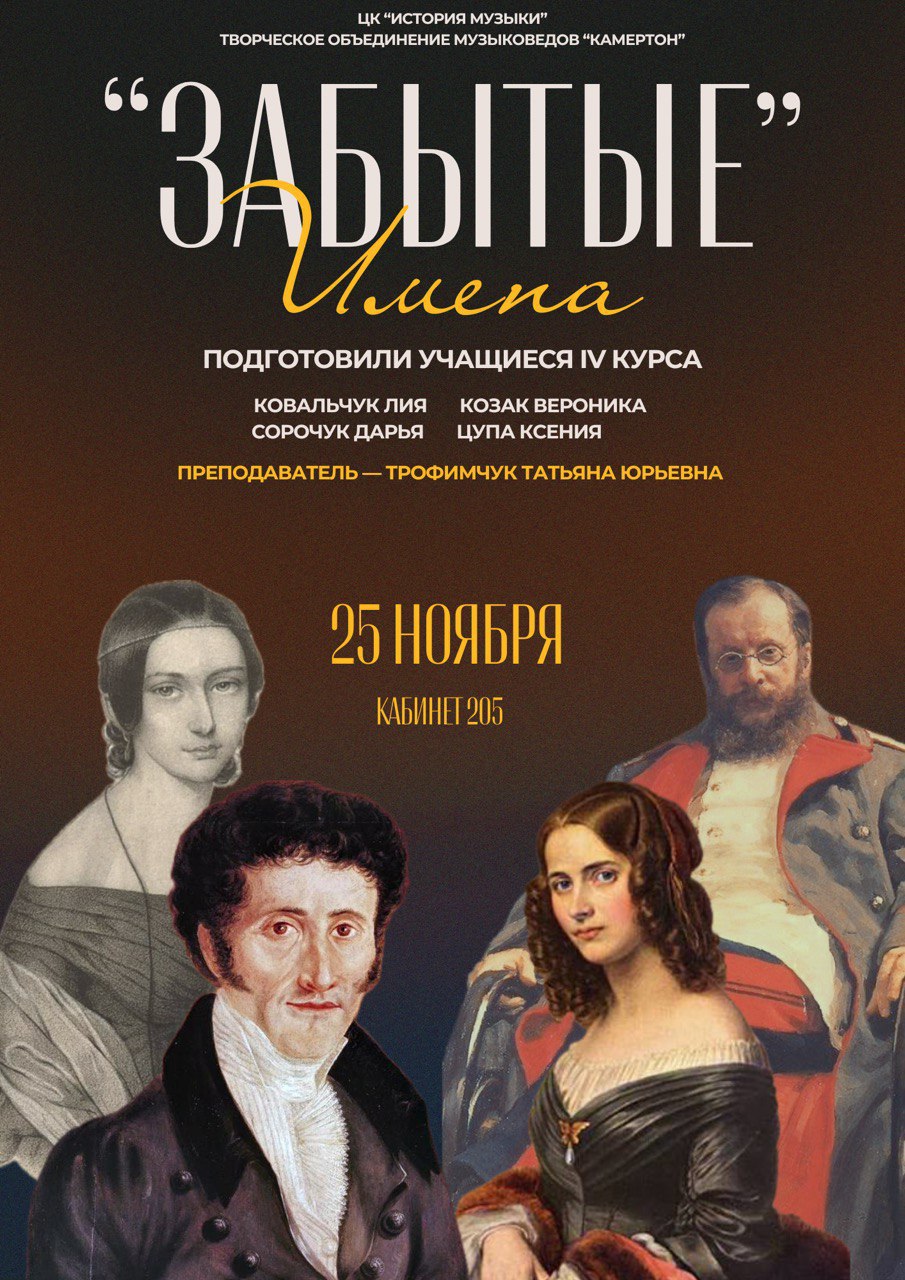 25 ноября в 14:30 в к.205 состоится заседание творческого объединения "Камертон" на тему "Забытые имена"